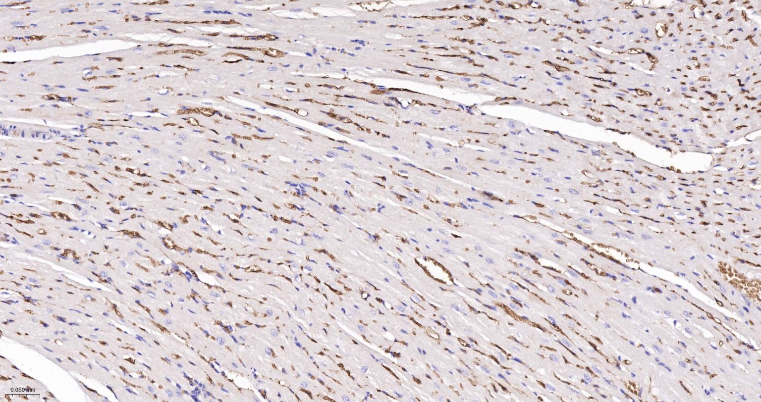 Paraformaldehyde-fixed, paraffin embedded Mouse Heart; Antigen retrieval by boiling in sodium citrate buffer (pH6.0) for 15 min; The section was incubated with AQP1 Polyclonal Antibody, Unconjugated (bs-1506R) at 1:200 overnight at 4°C, followed by conjugation to the bs-0295G-HRP and DAB (C-0010) staining.