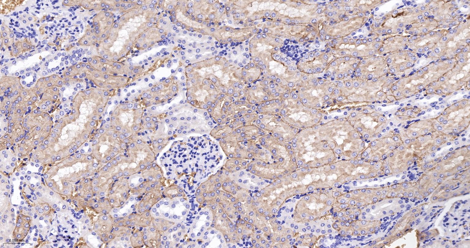 Paraformaldehyde-fixed, paraffin embedded Rat Kidney; Antigen retrieval by boiling in sodium citrate buffer (pH6.0) for 15 min; The section was incubated with AQP1 Polyclonal Antibody, Unconjugated (bs-1506R) at 1:200 overnight at 4°C, followed by conjugation to the bs-0295G-HRP and DAB (C-0010) staining.