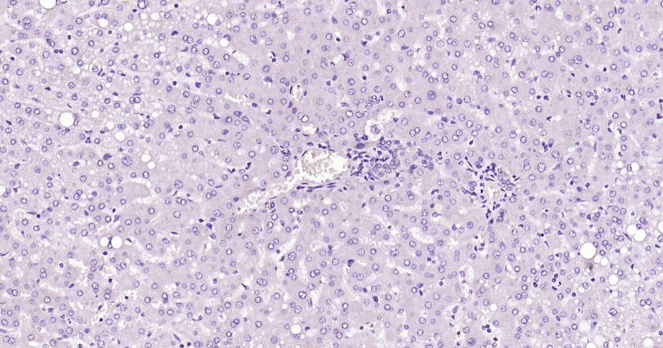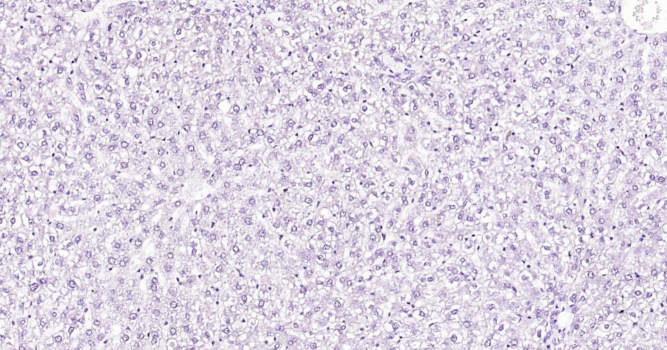 (Negative control)Paraformaldehyde-fixed, paraffin embedded Rat Liver; Antigen retrieval by boiling in sodium citrate buffer (pH6.0) for 15 min; Antibody incubation with AFP(A2) Monoclonal Antibody, Unconjugated(bsm-1621M) at 1:500 overnight at 4°C, followed by conjugation to the bs-40296G-HRP and DAB (C-0010) staining.