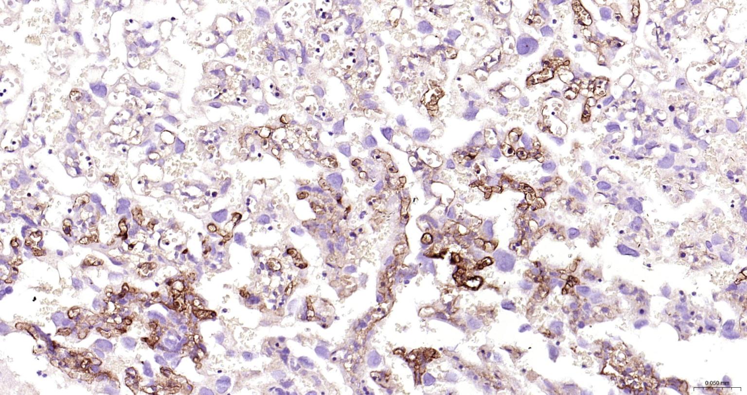 Paraformaldehyde-fixed, paraffin embedded Rat Placenta; Antigen retrieval by boiling in sodium citrate buffer (pH6.0) for 15 min; The section was incubated with AFP(A2) Monoclonal Antibody, Unconjugated (bsm-1621M) at 1:200 overnight at 4°C, followed by conjugation to the bs-40296G-HRP and DAB (C-0010) staining.