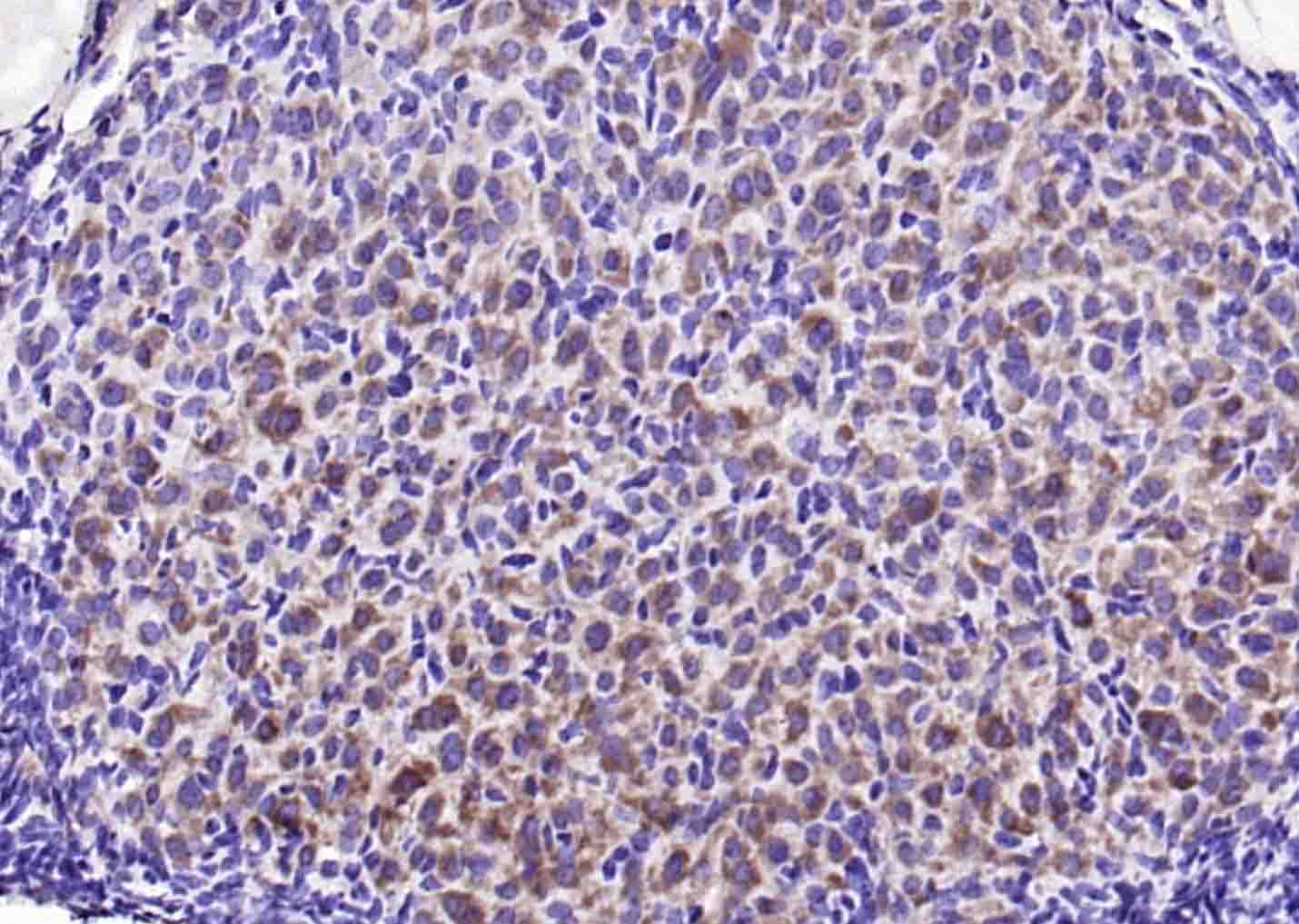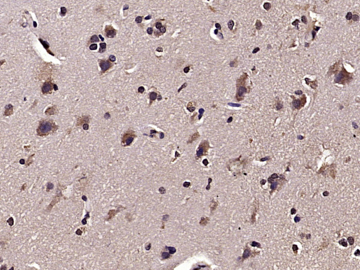 Paraformaldehyde-fixed, paraffin embedded (human brain glioma); Antigen retrieval by microwave in sodium citratebuffer (pH6.0) ; Block endogenous peroxidase by 3% hydrogen peroxide for 30 minutes; Blocking buffer (3%BSA) at RTfor 30min; Antibody incubation with (Stathmin 1 (Ser16)) Polyclonal/MonoclonalAntibody, Unconjugated (bs-3431R) at 1:400 overnight at 4℃,followed by conjugation to the secondary antibody (labeled with HRP)and DAB staining.