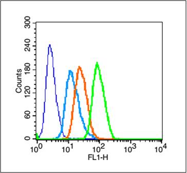 Secondary Antibody (white blue line): Goat anti-rabbit IgG-FITC,Dilution: 1μg /test.