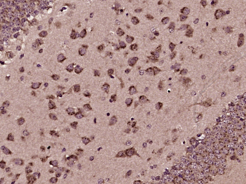 Paraformaldehyde-fixed, paraffin embedded (Mouse brain); Antigen retrieval by boiling in sodium citrate buffer (pH6.0) for 15min; Block endogenous peroxidase by 3% hydrogen peroxide for 20 minutes; Blocking buffer (normal goat serum) at 37°C for 30min; Antibody incubation with (PAP2B) Polyclonal Antibody, Unconjugated (bs-4127R) at 1:400 overnight at 4°C, followed by operating according to SP Kit(Rabbit) (sp-0023) instructionsand DAB staining.