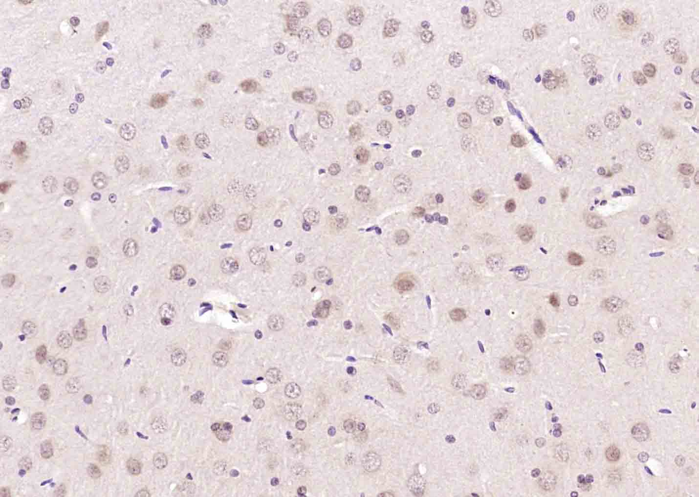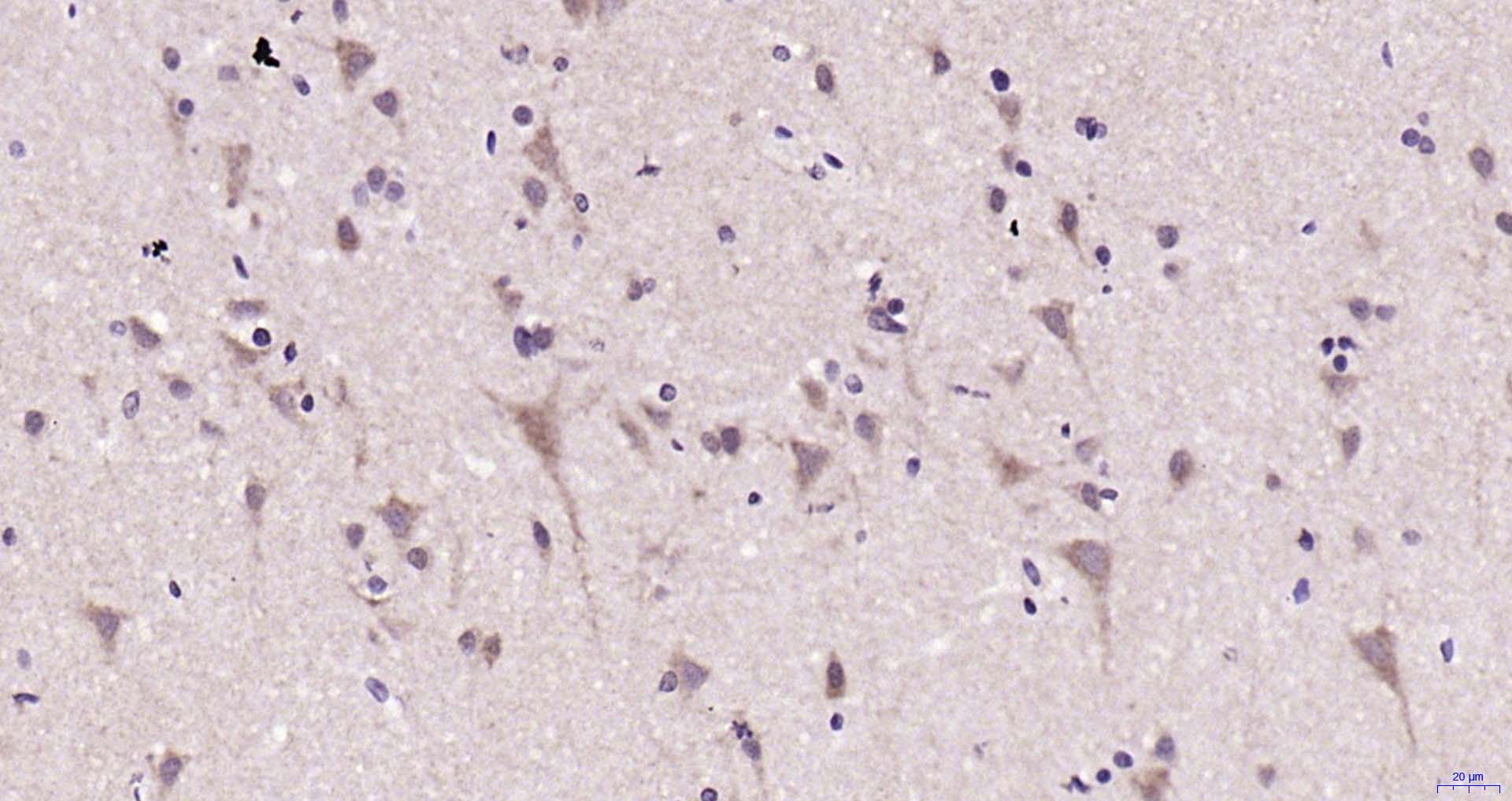 Paraformaldehyde-fixed, paraffin embedded (rat brain); Antigen retrieval by boiling in sodium citrate buffer (pH6.0) for 15min; Block endogenous peroxidase by 3% hydrogen peroxide for 20 minutes; Blocking buffer (normal goat serum) at 37°C for 30min; Antibody incubation with (MAPK11) Polyclonal Antibody, Unconjugated (bs-4138R) at 1:200 overnight at 4°C, followed by operating according to SP Kit(Rabbit) (sp-0023) instructionsand DAB staining.