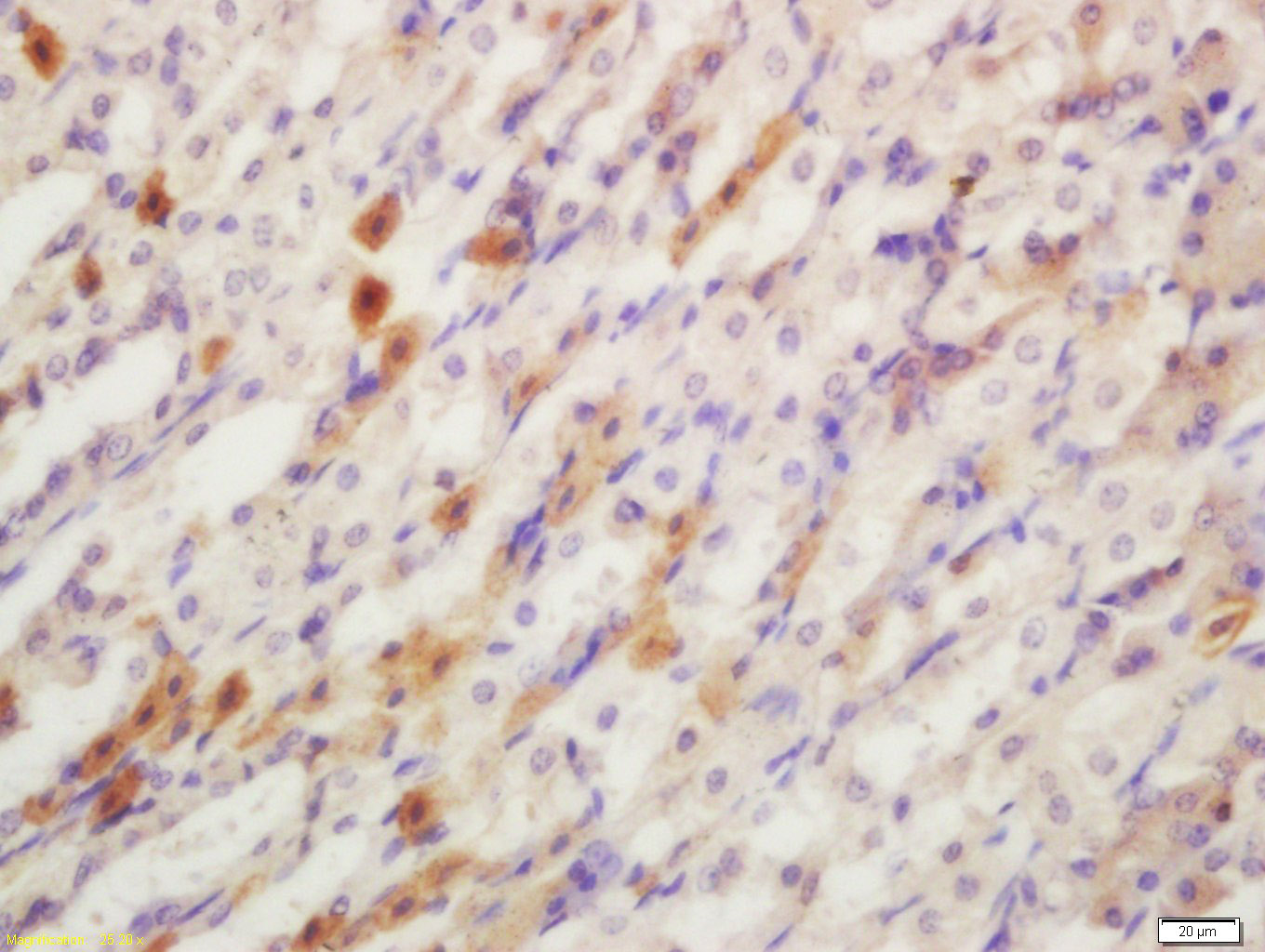 Antigen retrieval: citrate buffer ( 0.01M, pH 6.0 ), Boiling bathing for 15min; Block endogenous peroxidase by 3% Hydrogen peroxide for 30min; Blocking buffer (normal goat serum,C-0005) at 37℃ for 20 min;