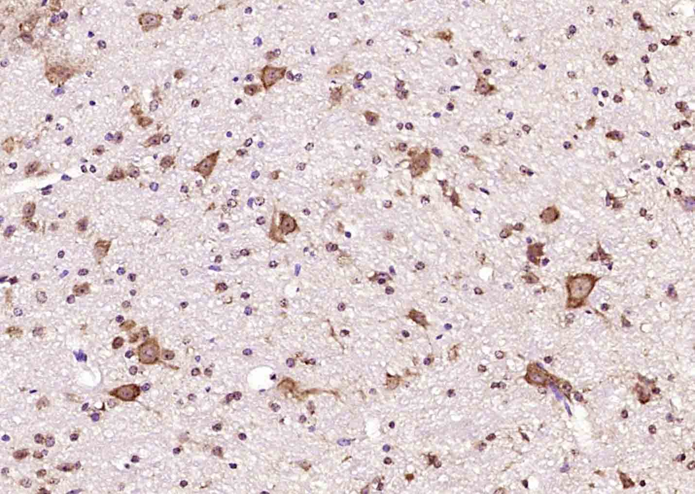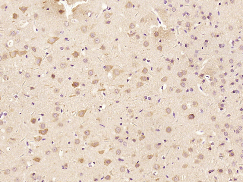 Paraformaldehyde-fixed, paraffin embedded (Rat brain); Antigen retrieval by boiling in sodium citrate buffer (pH6.0) for 15min; Block endogenous peroxidase by 3% hydrogen peroxide for 20 minutes; Blocking buffer (normal goat serum) at 37°C for 30min; Antibody incubation with (ABAT) Polyclonal Antibody, Unconjugated (bs-4234R) at 1:400 overnight at 4°C, followed by operating according to SP Kit(Rabbit) (sp-0023) instructionsand DAB staining.
