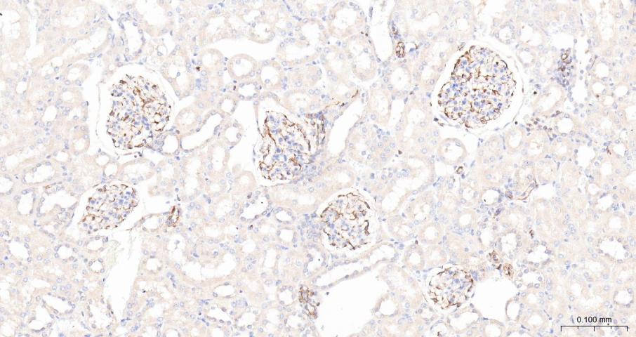 Paraformaldehyde-fixed, paraffin embedded Mouse Kidney; Antigen retrieval by boiling in sodium citrate buffer (pH6.0) for 15 min; Antibody incubation with ADAM17 Polyclonal Antibody, Unconjugated (bs-4236R) at 1:200 overnight at 4°C, followed by conjugation to the bs-0295G-HRP and DAB (C-0010) staining.