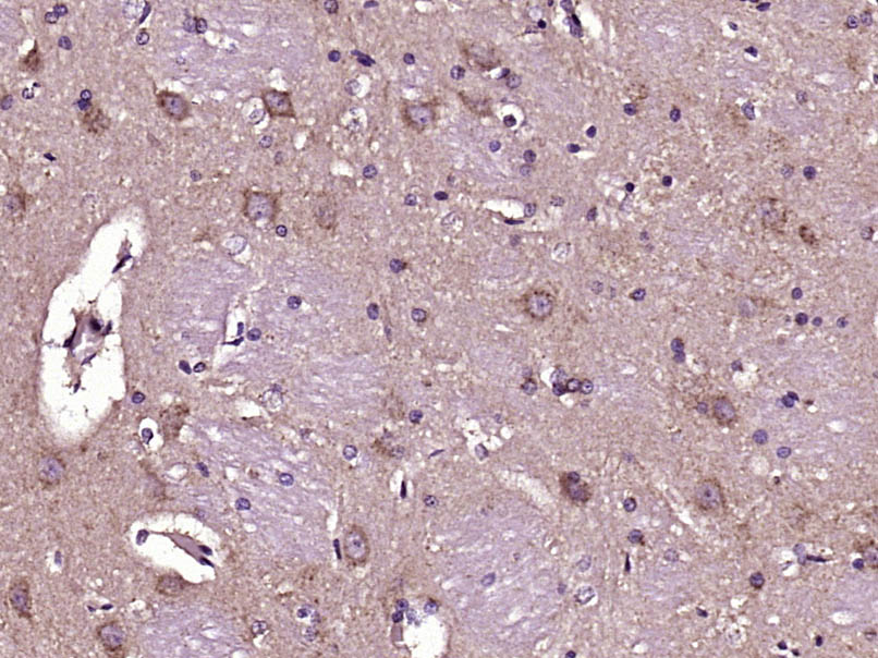 Paraformaldehyde-fixed, paraffin embedded (Rat brain); Antigen retrieval by boiling in sodium citrate buffer (pH6.0) for 15min; Block endogenous peroxidase by 3% hydrogen peroxide for 20 minutes; Blocking buffer (normal goat serum) at 37°C for 30min; Antibody incubation with (COG1) Polyclonal Antibody, Unconjugated (bs-6647R) at 1:400 overnight at 4°C, followed by operating according to SP Kit(Rabbit) (sp-0023) instructionsand DAB staining.