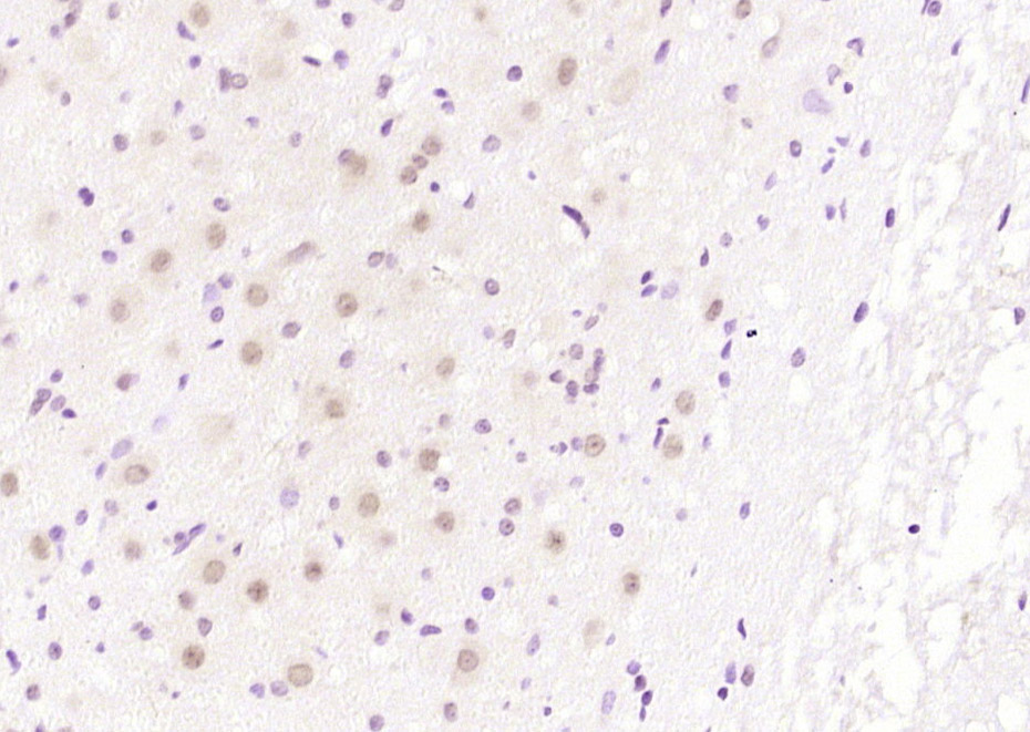 Paraformaldehyde-fixed, paraffin embedded (mouse brain); Antigen retrieval by boiling in sodium citrate buffer (pH6.0) for 15min; Block endogenous peroxidase by 3% hydrogen peroxide for 20 minutes; Blocking buffer (normal goat serum) at 37°C for 30min; Antibody incubation with (NUSAP1) Polyclonal Antibody, Unconjugated (bs-7764R) at 1:200 overnight at 4°C, followed by operating according to SP Kit(Rabbit) (sp-0023) instructionsand DAB staining.