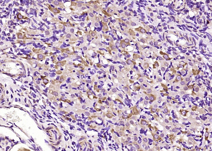 Paraformaldehyde-fixed, paraffin embedded (rat ovary tissue); Antigen retrieval by boiling in sodium citrate buffer (pH6.0) for 15min; Block endogenous peroxidase by 3% hydrogen peroxide for 20 minutes; Blocking buffer (normal goat serum) at 37°C for 30min; Antibody incubation with (TCAB1) Polyclonal Antibody, Unconjugated (bs-8163R) at 1:200 overnight at 4°C, followed by operating according to SP Kit(Rabbit) (sp-0023) instructionsand DAB staining.
