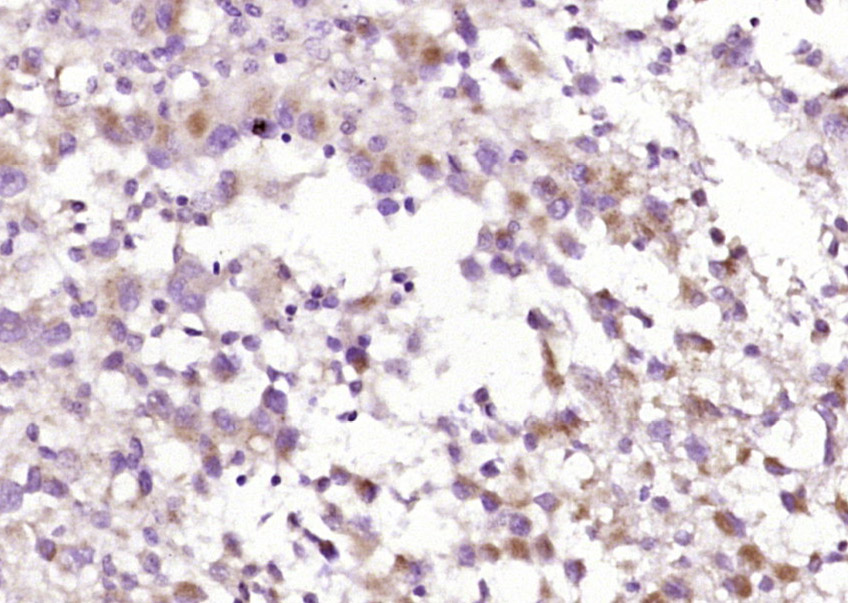 Paraformaldehyde-fixed, paraffin embedded (human brain glioma); Antigen retrieval by boiling in sodium citrate buffer (pH6.0) for 15min; Block endogenous peroxidase by 3% hydrogen peroxide for 20 minutes; Blocking buffer (normal goat serum) at 37°C for 30min; Antibody incubation with (C1QC) Polyclonal Antibody, Unconjugated (bs-11337R) at 1:400 overnight at 4°C, followed by operating according to SP Kit(Rabbit) (sp-0023) instructionsand DAB staining.