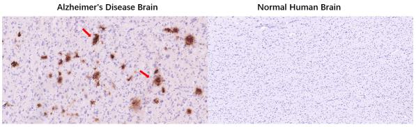 Block endogenous peroxidase by 3% hydrogen peroxide for 20 minutes; Blocking buffer (normal goat serum) at 37°C for 30min; Incubation with (beta-Amyloid(1-42)) Monoclona Antibody, Unconjugated (bsm-4713M) at 1:1000 overnight at 4°C, followed by operating according to SP Kit(Rabbit) (sp-0024) instructionsand DAB staining.