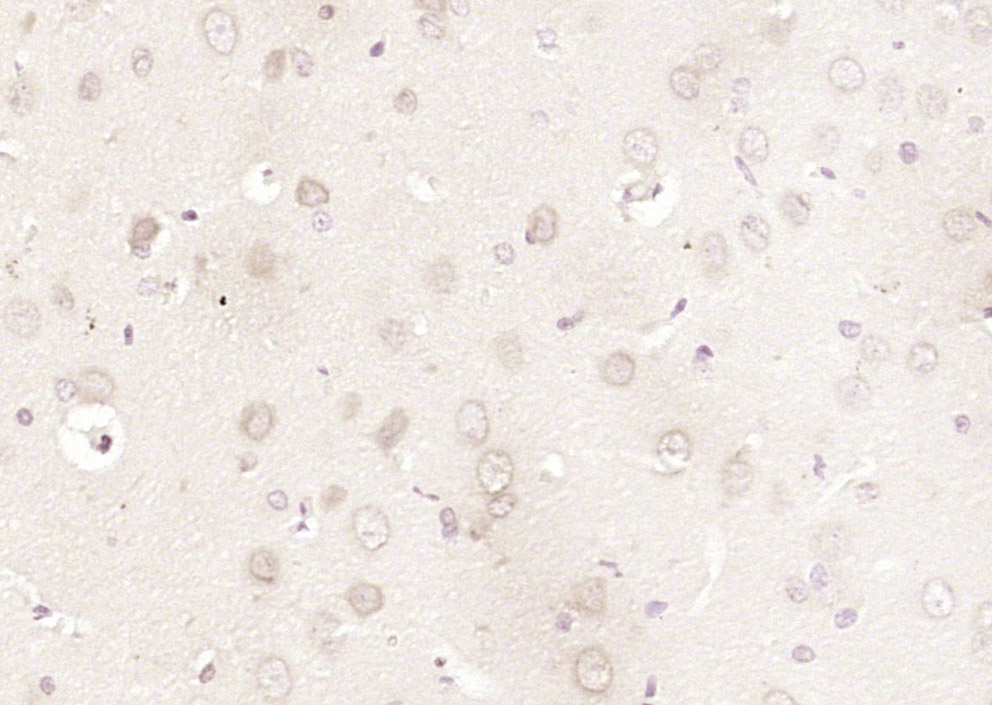 Paraformaldehyde-fixed, paraffin embedded (rat brain); Antigen retrieval by boiling in sodium citrate buffer (pH6.0) for 15min; Block endogenous peroxidase by 3% hydrogen peroxide for 20 minutes; Blocking buffer (normal goat serum) at 37°C for 30min; Antibody incubation with (FOPNL) Polyclonal Antibody, Unconjugated (bs-13197R) at 1:200 overnight at 4°C, followed by operating according to SP Kit(Rabbit) (sp-0023) instructionsand DAB staining.