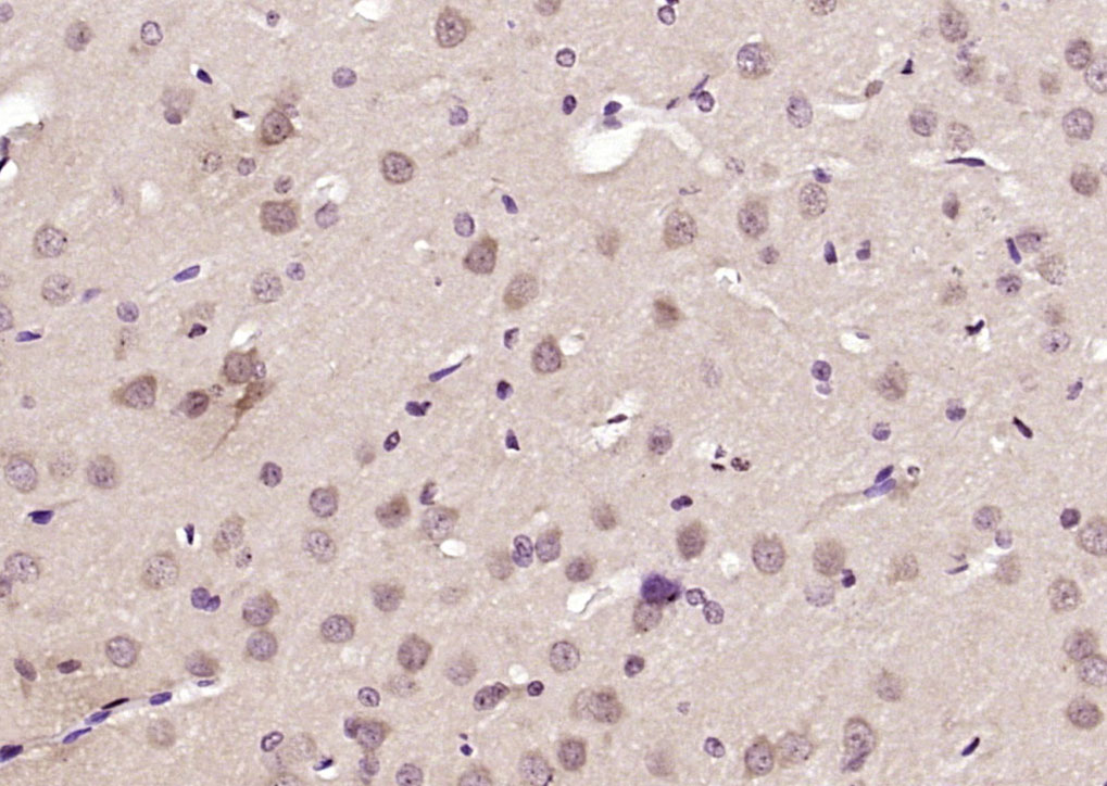 Paraformaldehyde-fixed, paraffin embedded (rat brain); Antigen retrieval by boiling in sodium citrate buffer (pH6.0) for 15min; Block endogenous peroxidase by 3% hydrogen peroxide for 20 minutes; Blocking buffer (normal goat serum) at 37°C for 30min; Antibody incubation with (HBS1L) Polyclonal Antibody, Unconjugated (bs-15420R) at 1:200 overnight at 4°C, followed by operating according to SP Kit(Rabbit) (sp-0023) instructionsand DAB staining.