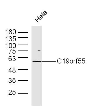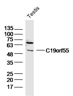 Primary: Anti- C19orf55 (bs-13789R) at 1/300 dilution
