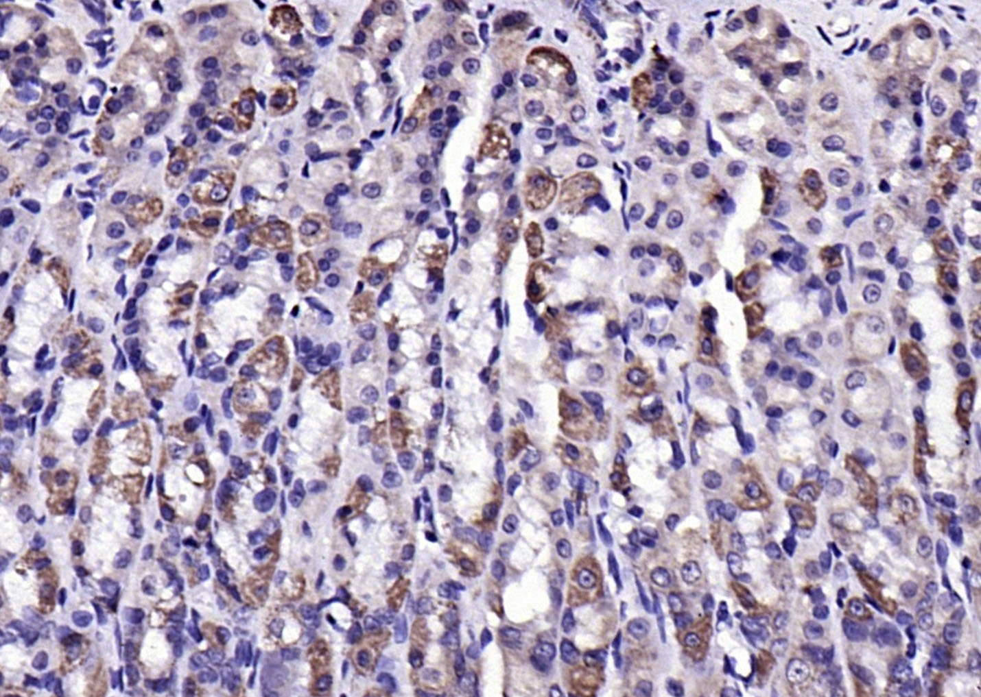 Paraformaldehyde-fixed, paraffin embedded (mouse stomach); Antigen retrieval by boiling in sodium citrate buffer (pH6.0) for 15min; Block endogenous peroxidase by 3% hydrogen peroxide for 20 minutes; Blocking buffer (normal goat serum) at 37°C for 30min; Antibody incubation with (LPA2) Polyclonal Antibody, Unconjugated (bs-10368R) at 1:200 overnight at 4°C, followed by operating according to SP Kit(Rabbit) (sp-0023) instructionsand DAB staining.