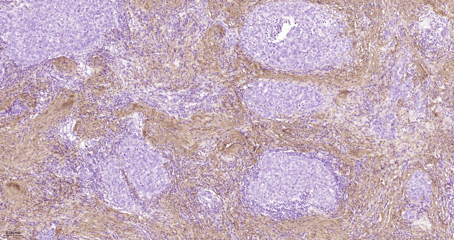 Paraformaldehyde-fixed, paraffin embedded Human Prostate Cancer; Antigen retrieval by boiling in sodium citrate buffer (pH6.0) for 15 min; The section was incubated with Collagen I Polyclonal Antibody, Unconjugated (bs-10423R) at 1:800 overnight at 4°C, followed by conjugation to the bs-0295G-HRP and DAB (C-0010) staining.