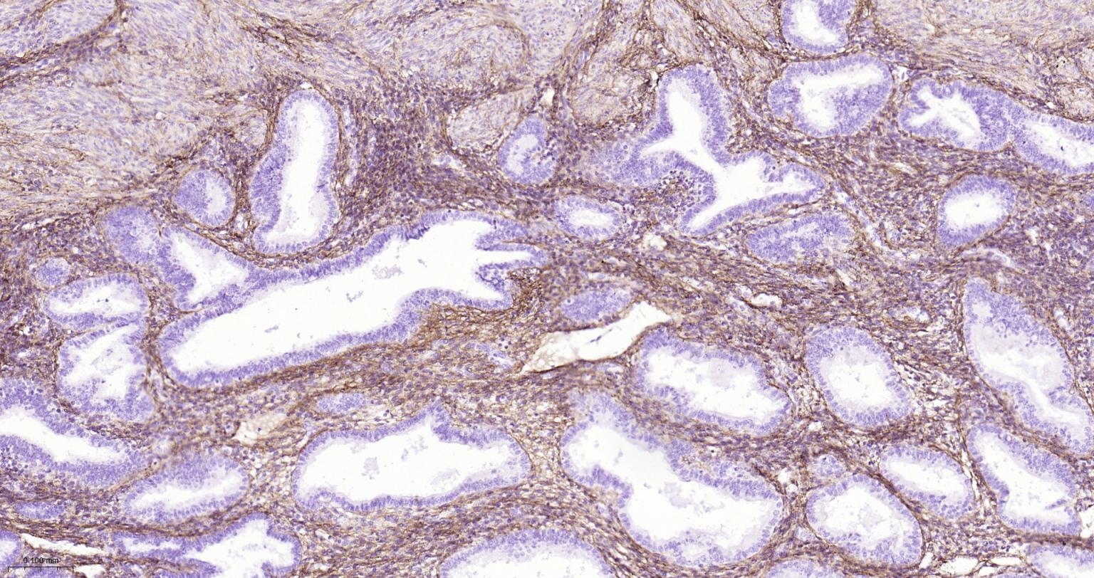Paraformaldehyde-fixed, paraffin embedded Human Uterus; Antigen retrieval by boiling in sodium citrate buffer (pH6.0) for 15 min; The section was incubated with Collagen I Polyclonal Antibody, Unconjugated (bs-10423R) at 1:800 overnight at 4°C, followed by conjugation to the bs-0295G-HRP and DAB (C-0010) staining.