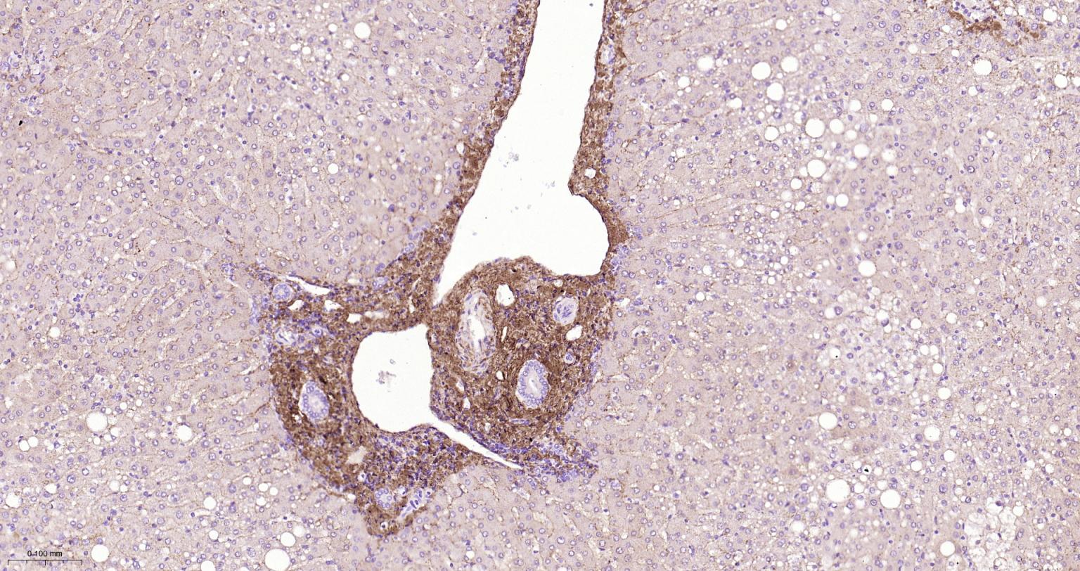 Paraformaldehyde-fixed, paraffin embedded Human Liver; Antigen retrieval by boiling in sodium citrate buffer (pH6.0) for 15 min; The section was incubated with Collagen I Polyclonal Antibody, Unconjugated (bs-10423R) at 1:800 overnight at 4°C, followed by conjugation to the bs-0295G-HRP and DAB (C-0010) staining.