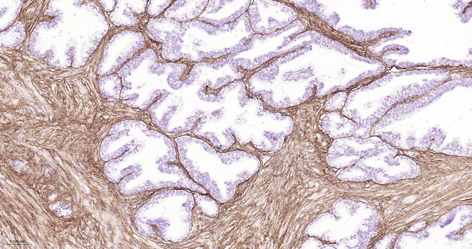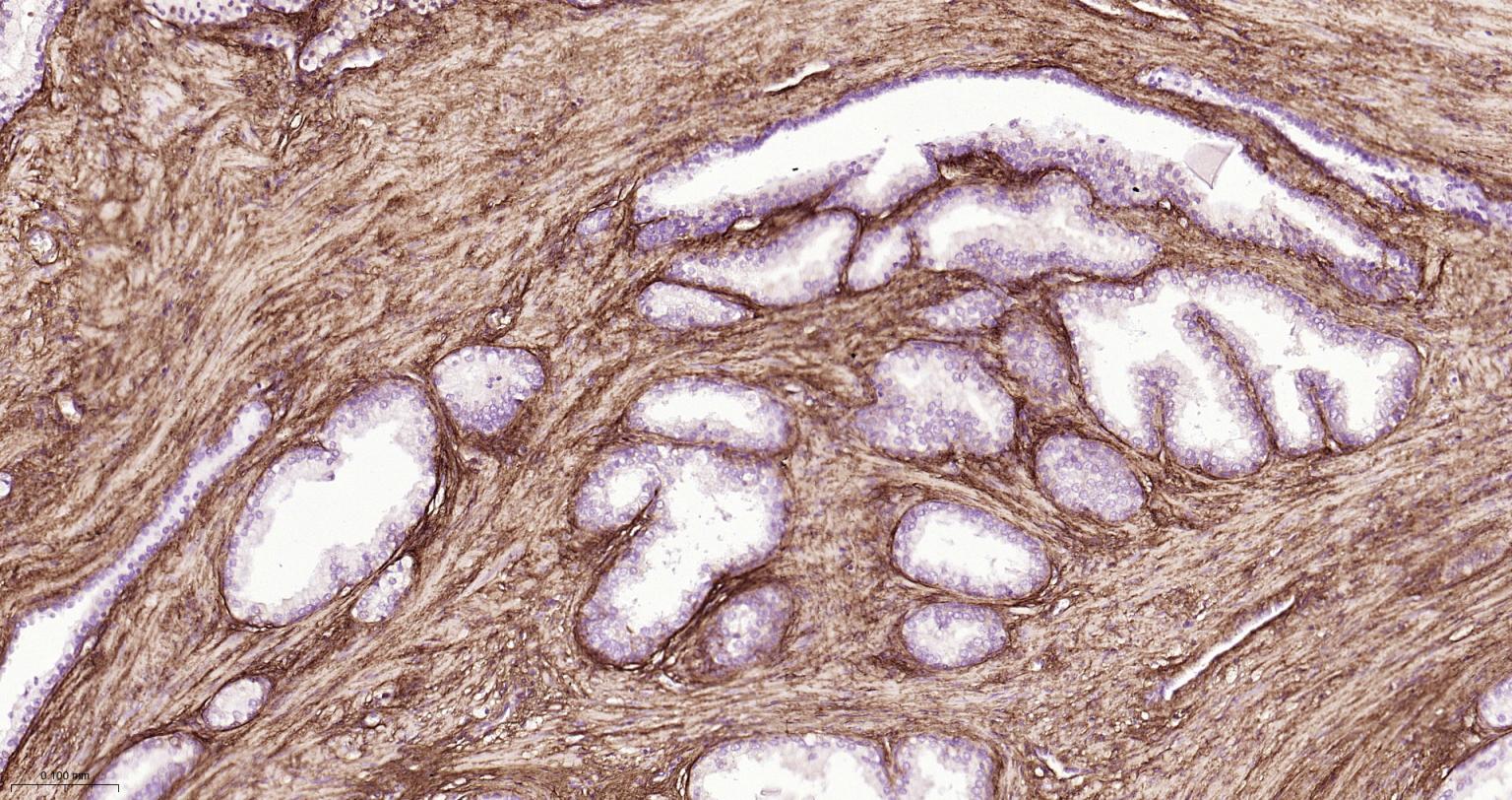 Paraformaldehyde-fixed, paraffin embedded Human Prostate; Antigen retrieval by boiling in sodium citrate buffer (pH6.0) for 15 min; The section was incubated with Collagen I Polyclonal Antibody, Unconjugated (bs-10423R) at 1:800 overnight at 4°C, followed by conjugation to the bs-0295G-HRP and DAB (C-0010) staining.