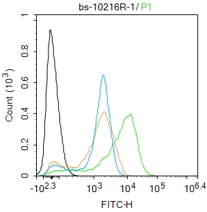 Primary Antibody (green line): Rabbit Anti-SOD1 antibody (bs-10216R)