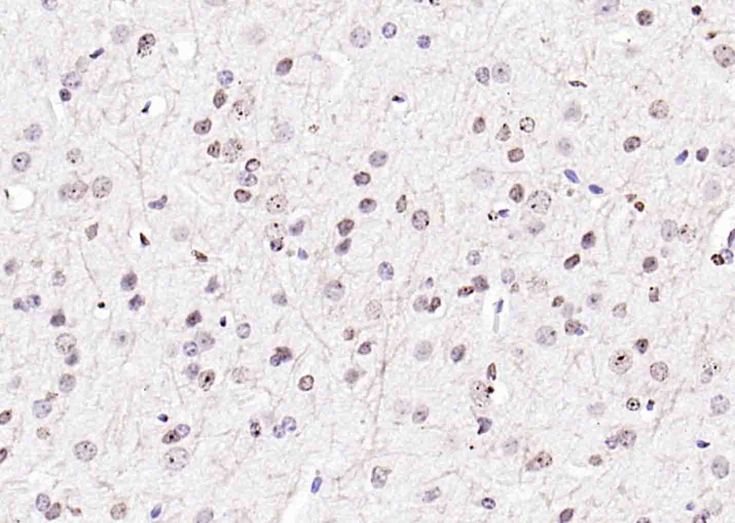 Paraformaldehyde-fixed, paraffin embedded (rat brain); Antigen retrieval by boiling in sodium citrate buffer (pH6.0) for 15min; Block endogenous peroxidase by 3% hydrogen peroxide for 20 minutes; Blocking buffer (normal goat serum) at 37°C for 30min; Antibody incubation with (Histone H3.1) Polyclonal Antibody, Unconjugated (bs-17422R) at 1:200 overnight at 4°C, followed by operating according to SP Kit(Rabbit) (sp-0023) instructionsand DAB staining.