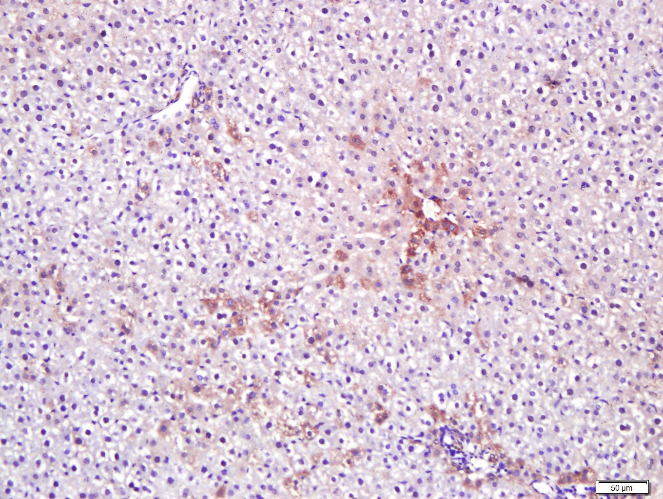 Paraformaldehyde-fixed, paraffin embedded (Rat liver); Antigen retrieval by boiling in sodium citrate buffer (pH6.0) for 15min; Block endogenous peroxidase by 3% hydrogen peroxide for 20 minutes; Blocking buffer (normal goat serum) at 37°C for 30min; Antibody incubation with (MRPL32) Polyclonal Antibody, Unconjugated (bs-17785R) at 1:500 overnight at 4°C, followed by a conjugated secondary (sp-0023) for 20 minutes and DAB staining.