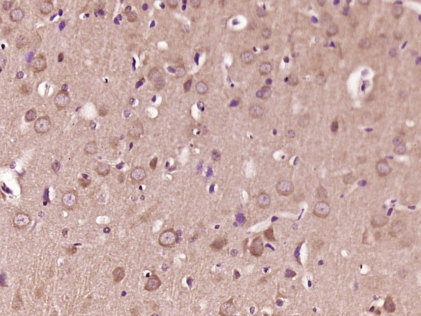 Paraformaldehyde-fixed, paraffin embedded (Mouse brain); Antigen retrieval by boiling in sodium citrate buffer (pH6.0) for 15min; Block endogenous peroxidase by 3% hydrogen peroxide for 20 minutes; Blocking buffer (normal goat serum) at 37°C for 30min; Antibody incubation with (LIPA2) Polyclonal Antibody, Unconjugated (bs-18299R) at 1:500 overnight at 4°C, followed by a conjugated secondary (sp-0023) for 20 minutes and DAB staining.