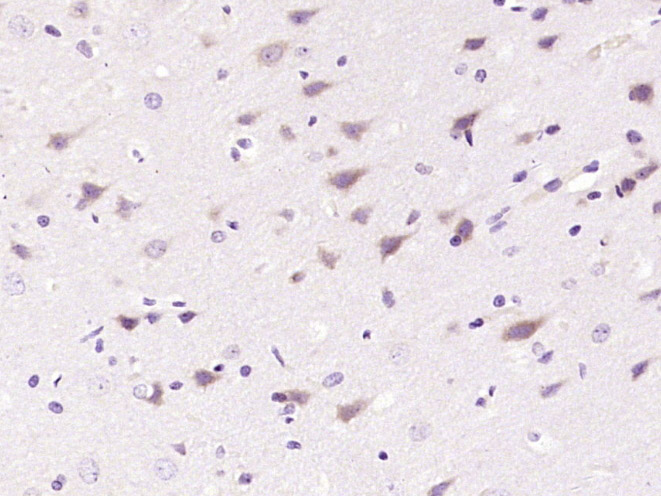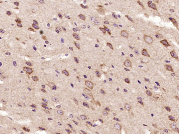 Paraformaldehyde-fixed, paraffin embedded (rat brain tissue); Antigen retrieval by boiling in sodium citrate buffer (pH6.0) for 15min; Block endogenous peroxidase by 3% hydrogen peroxide for 20 minutes; Blocking buffer (normal goat serum) at 37°C for 30min; Antibody incubation with (PPP2R2C) Polyclonal Antibody, Unconjugated (bs-19547R) at 1:400 overnight at 4°C, followed by operating according to SP Kit(Rabbit) (sp-0023) instructionsand DAB staining.