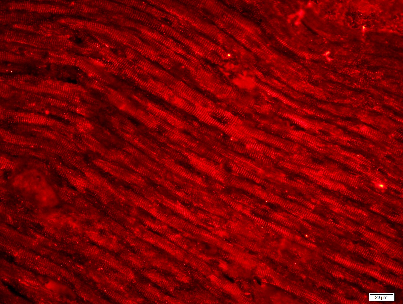 Paraformaldehyde-fixed, paraffin embedded (Rat heart); Antigen retrieval by boiling in sodium citrate buffer (pH6.0) for 15min; Block endogenous peroxidase by 3% hydrogen peroxide for 20 minutes; Blocking buffer (normal goat serum) at 37°C for 30min; Antibody incubation with (Desmin; DES) Polyclonal Antibody, Unconjugated (bs-20702R) at 1:400 overnight at 4°C, followed by a conjugated secondary antibody (bs-0295G-cy3) for 90 minutes.