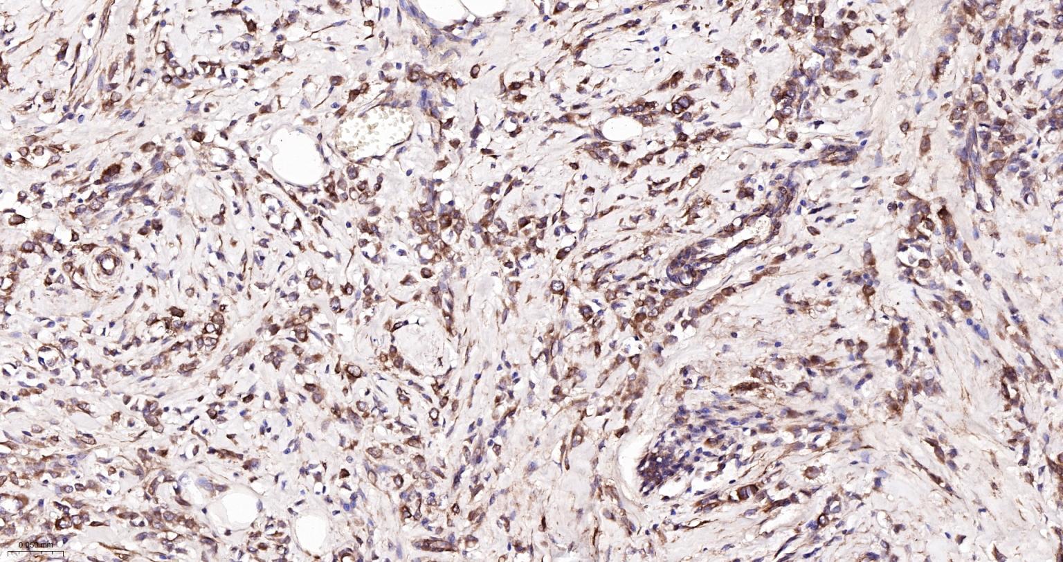 Paraformaldehyde-fixed, paraffin embedded Human Breast Cancer; Antigen retrieval by boiling in sodium citrate buffer (pH6.0) for 15 min; The section was incubated with alpha Tubulin Monoclonal Antibody, Unconjugated (bsm-33039M) at 1:1000 overnight at 4°C, followed by conjugation to the bs-40296G-HRP and DAB (C-0010) staining.