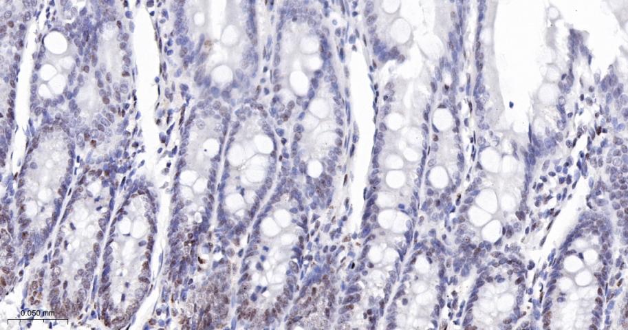 Paraformaldehyde-fixed, paraffin embedded Mouse Small Intestine; Antigen retrieval by boiling in sodium citrate buffer (pH6.0) for 15 min; Antibody incubation with phospho-STAT3 (Ser727) Monoclonal Antibody, Unconjugated(bsm-52210R) at 1:200 overnight at 4°C, followed by conjugation to the bs-0295G-HRP and DAB (C-0010) staining.