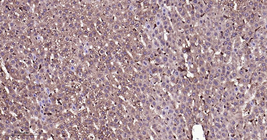 Paraformaldehyde-fixed, paraffin embedded Mouse Liver; Antigen retrieval by boiling in sodium citrate buffer (pH6.0) for 15 min; Antibody incubation with Smad3 Monoclonal Antibody, Unconjugated(bsm-52224R) at 1:200 overnight at 4°C, followed by conjugation to the bs-0295G-HRP and DAB (C-0010) staining.