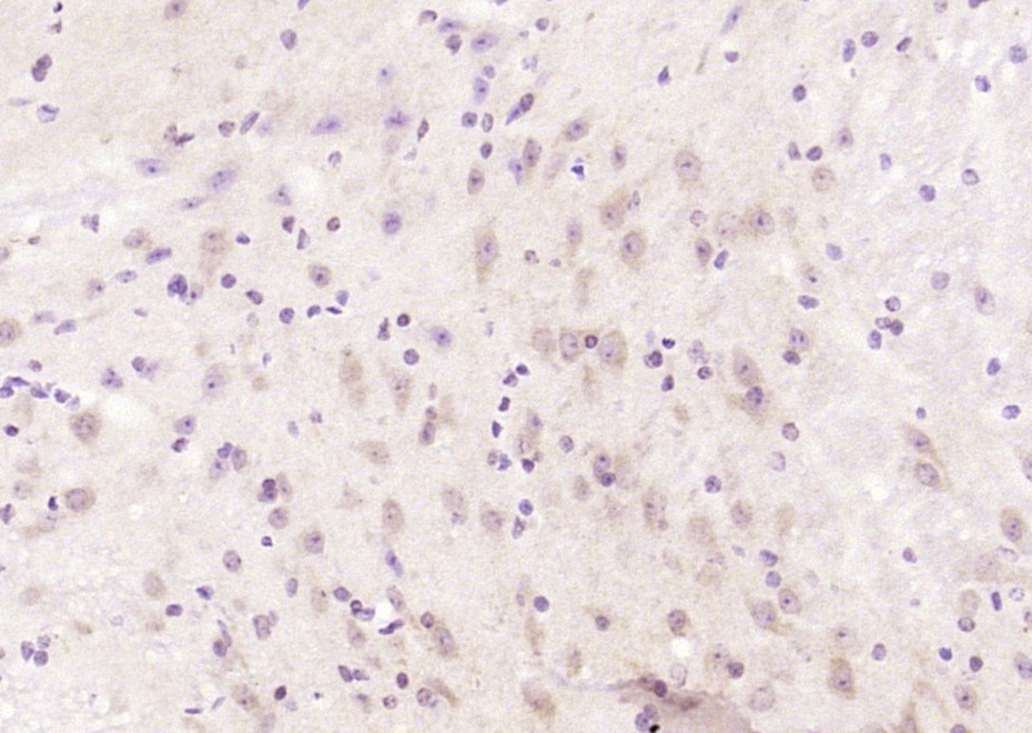 Paraformaldehyde-fixed, paraffin embedded (mouse brain); Antigen retrieval by boiling in sodium citrate buffer (pH6.0) for 15min; Block endogenous peroxidase by 3% hydrogen peroxide for 20 minutes; Blocking buffer (normal goat serum) at 37°C for 30min; Antibody incubation with (Clathrin heavy chain) Polyclonal Antibody, Unconjugated (bs-21805R) at 1:400 overnight at 4°C, followed by operating according to SP Kit(Rabbit) (sp-0023) instructionsand DAB staining.