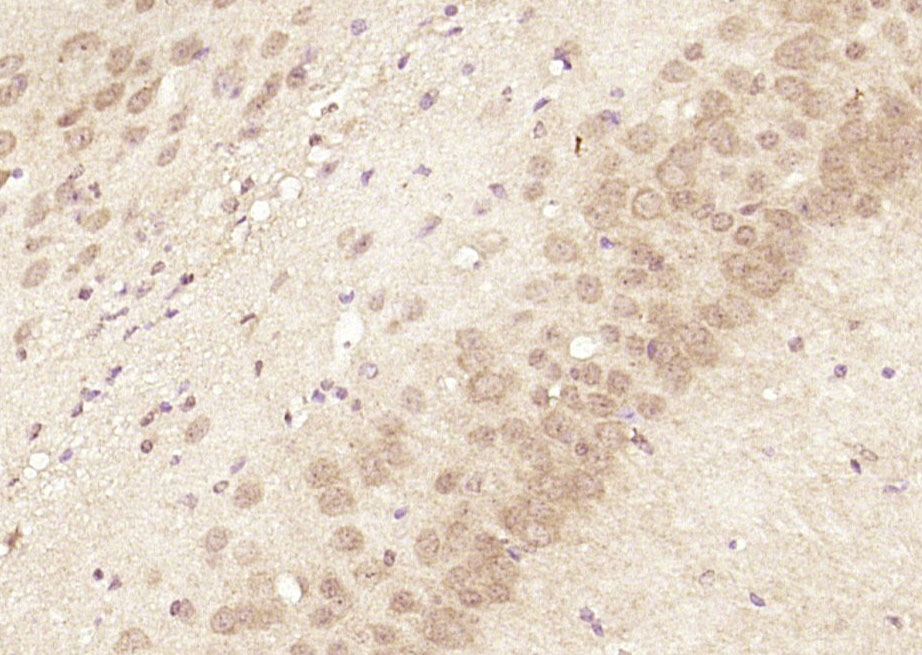 Paraformaldehyde-fixed, paraffin embedded (mouse brain); Antigen retrieval by boiling in sodium citrate buffer (pH6.0) for 15min; Block endogenous peroxidase by 3% hydrogen peroxide for 20 minutes; Blocking buffer (normal goat serum) at 37°C for 30min; Antibody incubation with (smooth muscle Myosin heavy chain 11) Polyclonal Antibody, Unconjugated (bs-22238R) at 1:200 overnight at 4°C, followed by operating according to SP Kit(Rabbit) (sp-0023) instructionsand DAB staining.