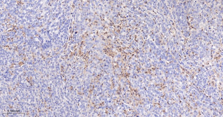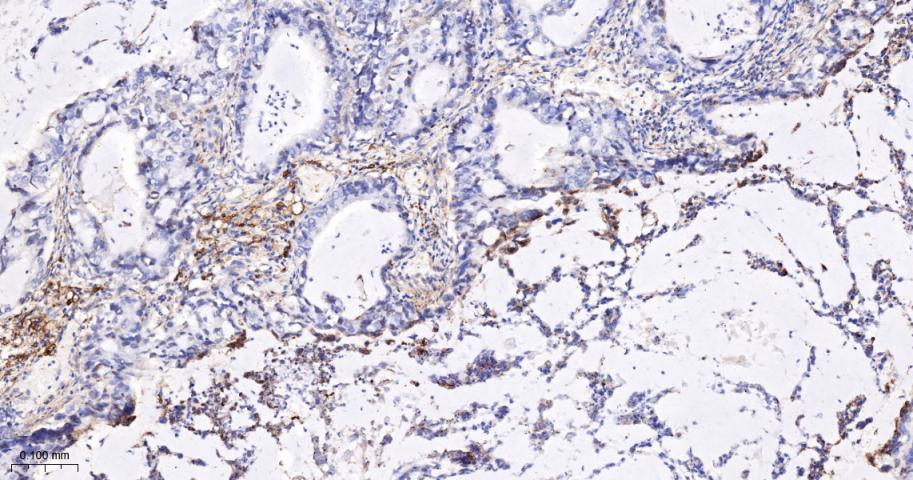 Paraformaldehyde-fixed, paraffin embedded Human Lung Cancer; Antigen retrieval by boiling in sodium citrate buffer (pH6.0) for 15 min; The section was incubated with IRF5 Monoclonal Antibody, Unconjugated (bsm-52117R) at 1:200 overnight at 4°C, followed by conjugation to the bs-0295G-HRP and DAB (C-0010) staining.