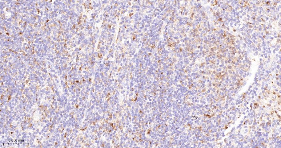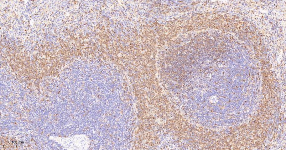 Paraformaldehyde-fixed, paraffin embedded Mouse Spleen; Antigen retrieval by boiling in sodium citrate buffer (pH6.0) for 15 min; The section was incubated with IRF5 Monoclonal Antibody, Unconjugated (bsm-52117R) at 1:200 overnight at 4°C, followed by conjugation to the bs-0295G-HRP and DAB (C-0010) staining.