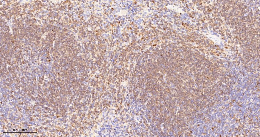 Paraformaldehyde-fixed, paraffin embedded Rat Spleen; Antigen retrieval by boiling in sodium citrate buffer (pH6.0) for 15 min; The section was incubated with IRF5 Monoclonal Antibody, Unconjugated (bsm-52117R) at 1:200 overnight at 4°C, followed by conjugation to the bs-0295G-HRP and DAB (C-0010) staining.