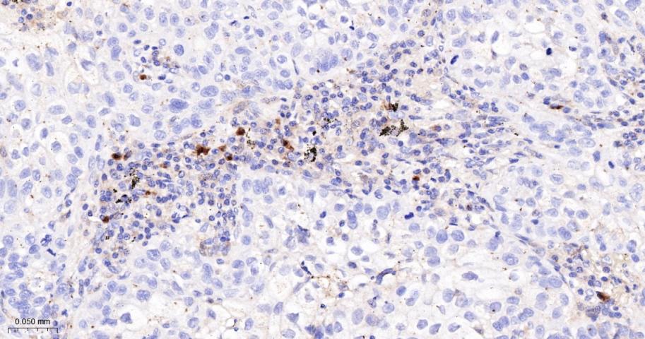 Paraformaldehyde-fixed, paraffin embedded Human lung squamous cell carcinoma; Antigen retrieval by boiling in sodium citrate buffer (pH6.0) for 15 min; The section was incubated with IRF5 Monoclonal Antibody, Unconjugated (bsm-52117R) at 1:200 overnight at 4°C, followed by conjugation to the bs-0295G-HRP and DAB (C-0010) staining.