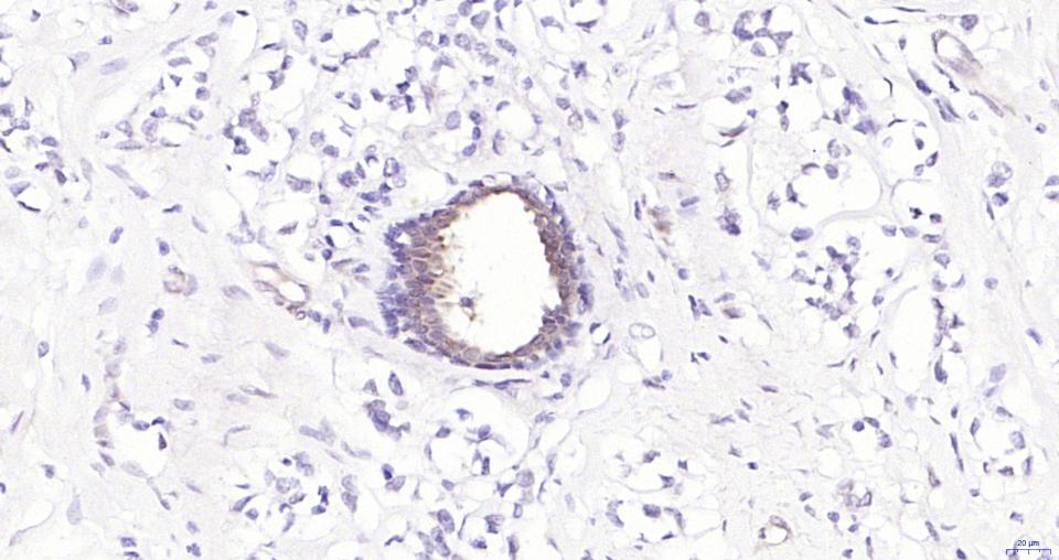 Paraformaldehyde-fixed, paraffin embedded Human Breast Cancer; Antigen retrieval by boiling in sodium citrate buffer (pH6.0) for 15 min; Antibody incubation with Phospho-YAP1 (Ser127) Monoclonal Antibody, Unconjugated(bsm-54797R) at 1:200 overnight at 4°C, followed by conjugation to the bs-0295G-HRP and DAB (C-0010) staining.