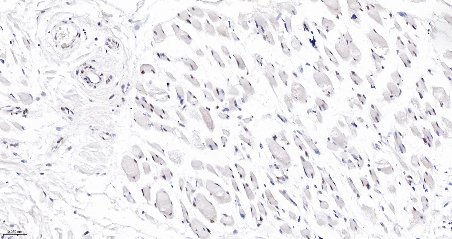 Paraformaldehyde-fixed, paraffin embedded Human Skeletal muscle; Antigen retrieval by boiling in sodium citrate buffer (pH6.0) for 15 min; The section was incubated with NRF1 Monoclonal Antibody, Unconjugated (bsm-54140R) at 1:300 overnight at 4°C, followed by conjugation to the bs-0295G-HRP and DAB (C-0010) staining.