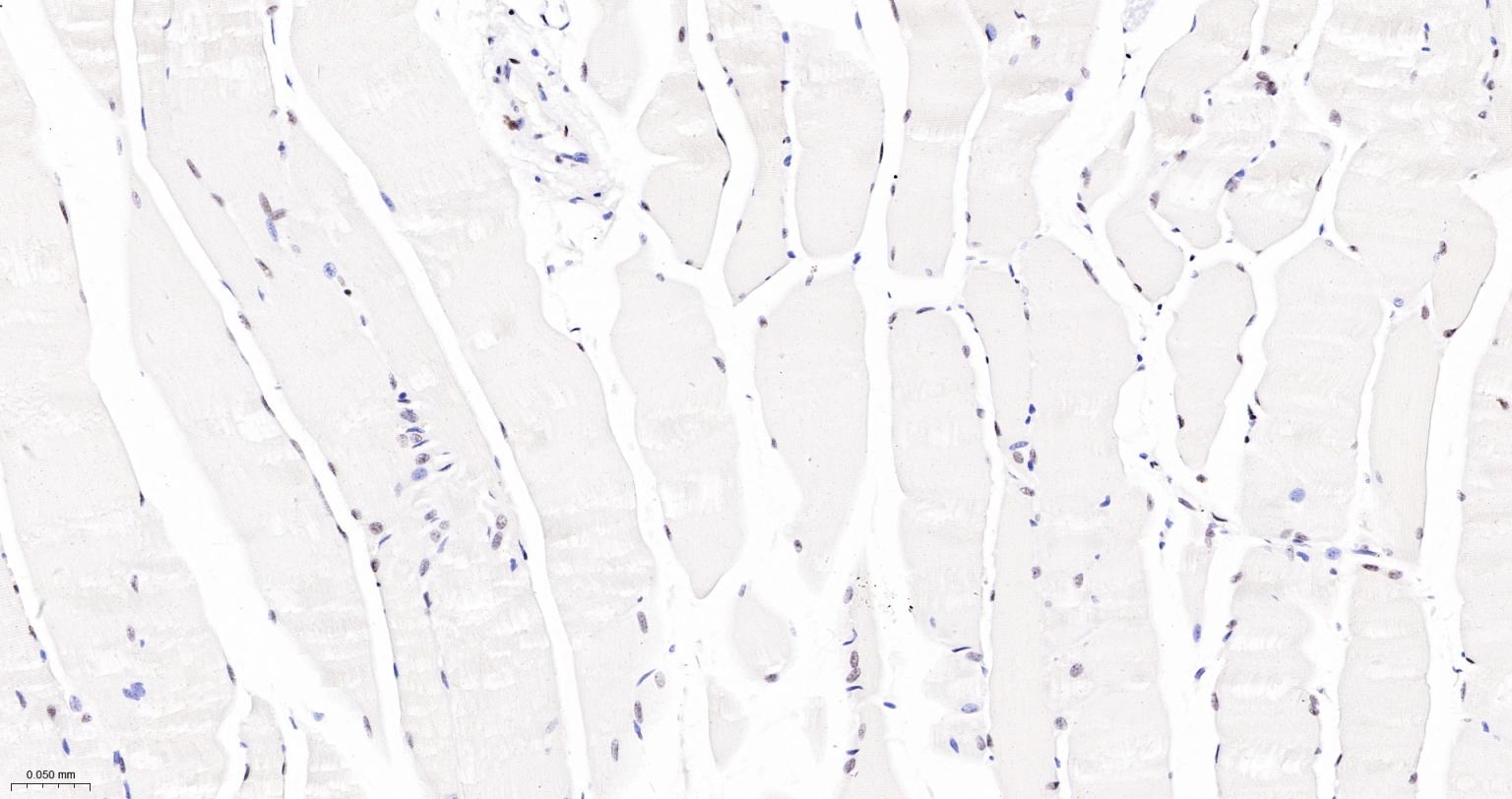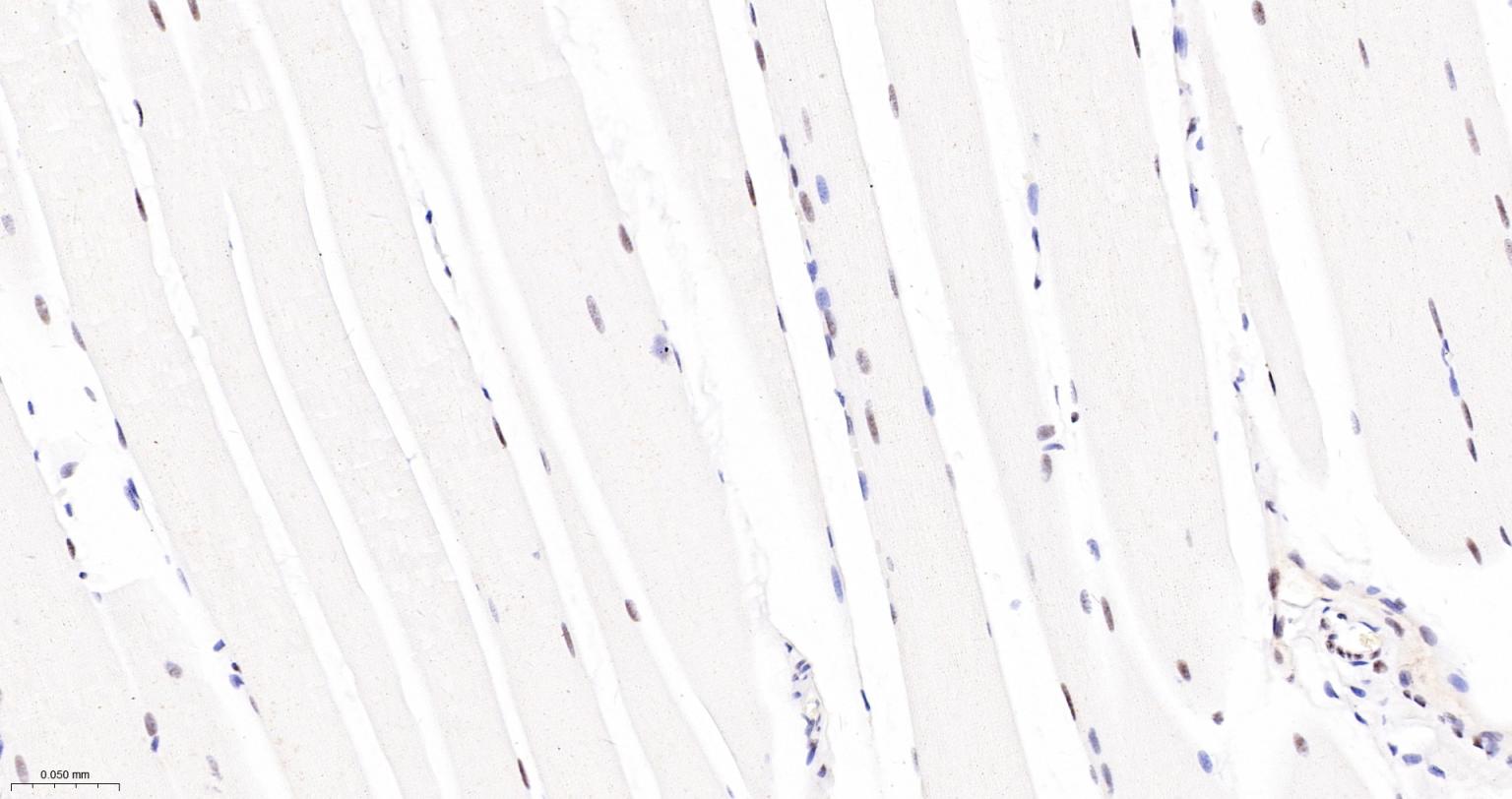 Paraformaldehyde-fixed, paraffin embedded Rat Skeletal muscle; Antigen retrieval by boiling in sodium citrate buffer (pH6.0) for 15 min; The section was incubated with NRF1 Monoclonal Antibody, Unconjugated (bsm-54140R) at 1:200 overnight at 4°C, followed by conjugation to the bs-0295G-HRP and DAB (C-0010) staining.