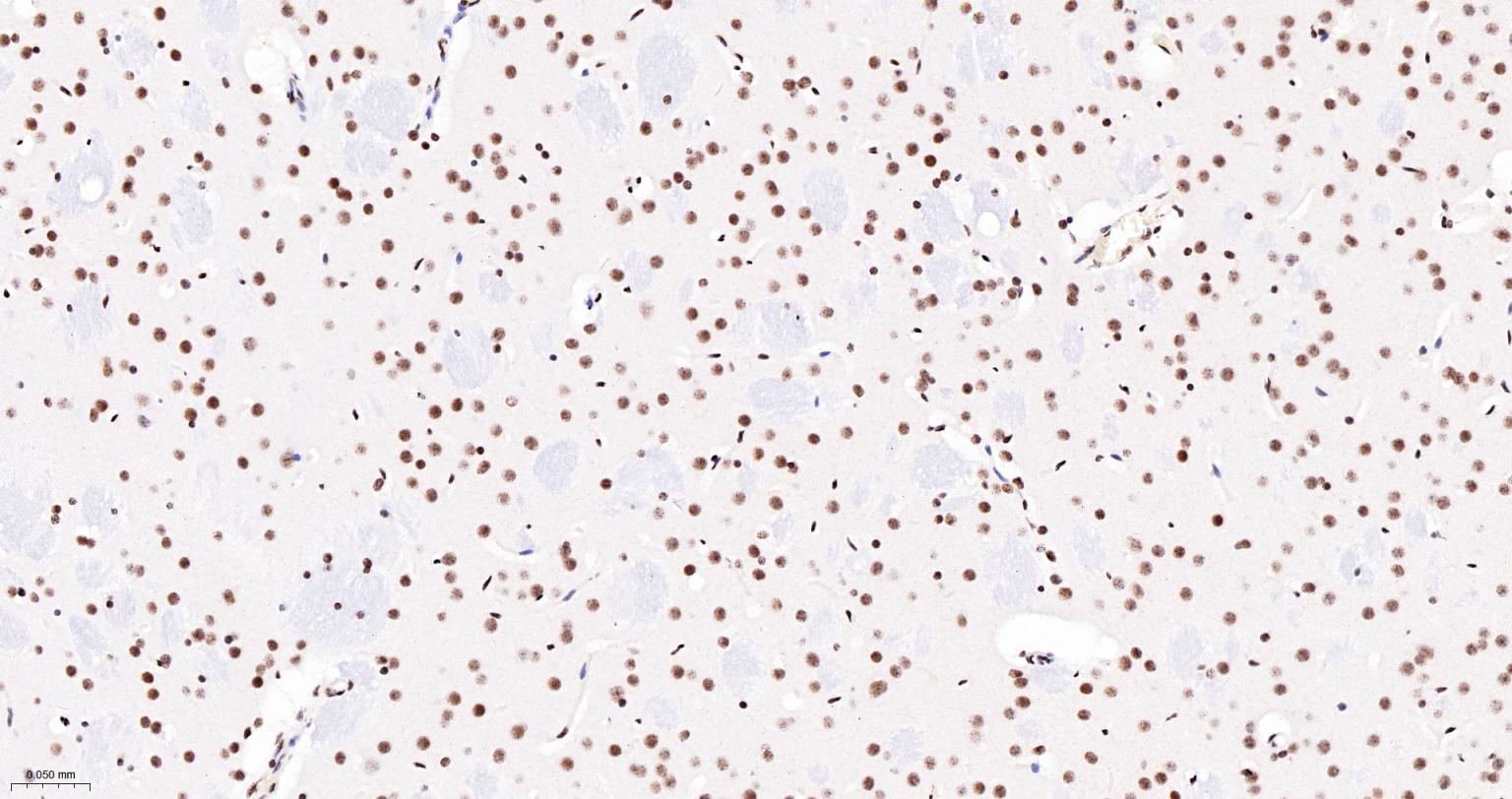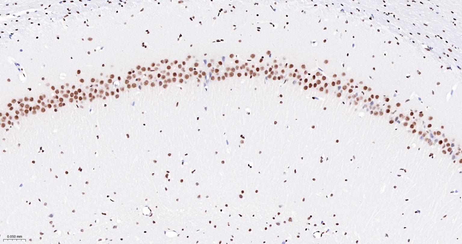 Paraformaldehyde-fixed, paraffin embedded Rat Cerebrum; Antigen retrieval by boiling in sodium citrate buffer (pH6.0) for 15 min; The section was incubated with NRF1 Monoclonal Antibody, Unconjugated (bsm-54140R) at 1:200 overnight at 4°C, followed by conjugation to the bs-0295G-HRP and DAB (C-0010) staining.