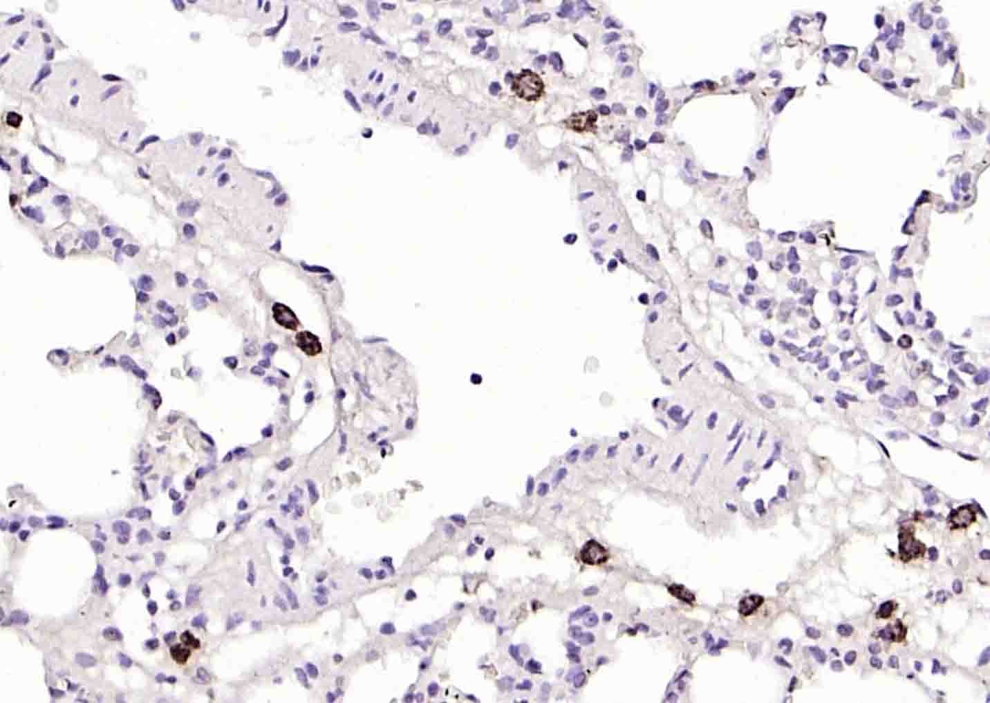 Paraformaldehyde-fixed, paraffin embedded (rat lung); Antigen retrieval by boiling in sodium citrate buffer (pH6.0) for 15min; Block endogenous peroxidase by 3% hydrogen peroxide for 20 minutes; Blocking buffer (normal goat serum) at 37°C for 30min; Incubation with (S100-A8 A9) Polyclonal Antibody, Unconjugated (bs-41227R) at 1:200 overnight at 4°C, followed by operating according to SP Kit(Rabbit) (sp-0023) instructionsand DAB staining.
