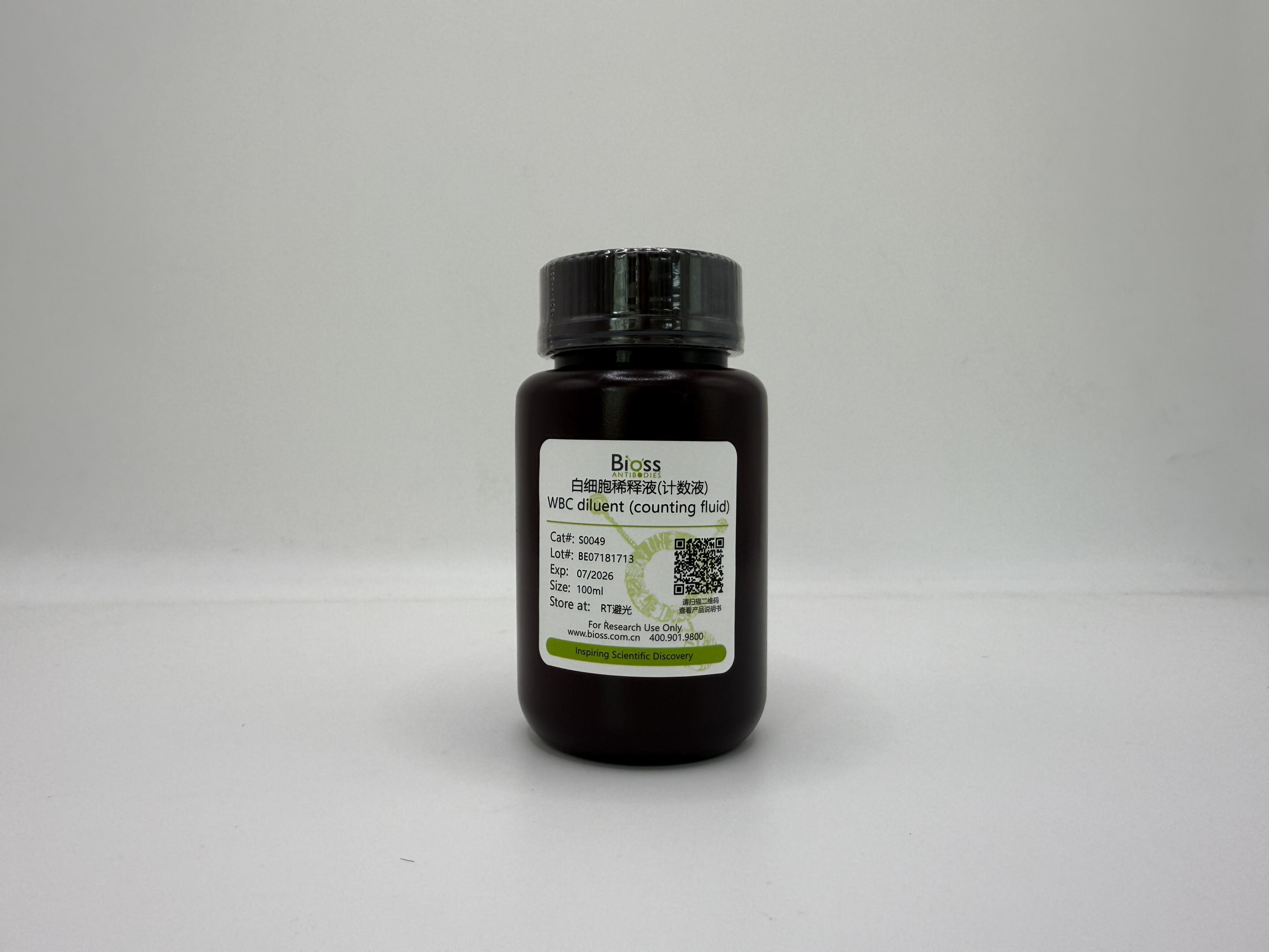 | 产品介绍 | 白细胞(White Blood Cell,WBC),是血液中的一种常见免疫细胞。白细胞稀释液(WBC dilution)作用原理是血液经白细胞稀释液,成熟红细胞全部被溶解,充入计数池后显微镜下计数一定体积内白细胞数,换算求出每升血液中白细胞的数量。 本产品仅用于科研领域,不用于临床诊断。 |