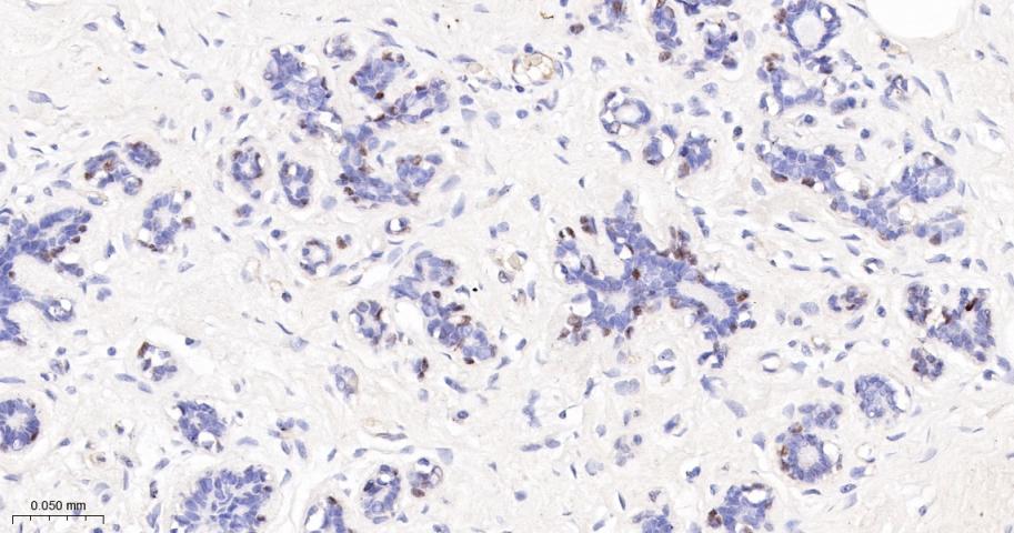 Paraformaldehyde-fixed, paraffin embedded Human Breast; Antigen retrieval by boiling in sodium citrate buffer (pH6.0) for 15 min; The section was incubated with SOX10 Monoclonal Antibody, Unconjugated (bsm-60234R) at 1:300 overnight at 4°C, followed by conjugation to the bs-0295G-HRP and DAB (C-0010) staining.
