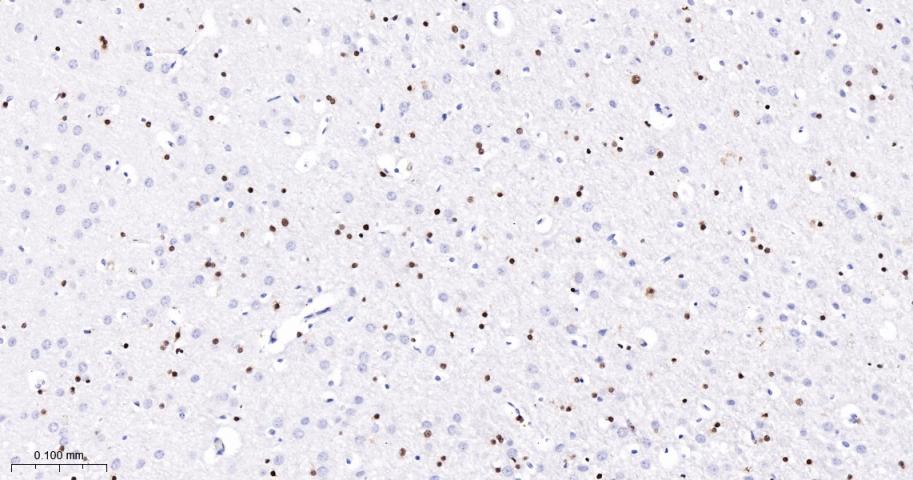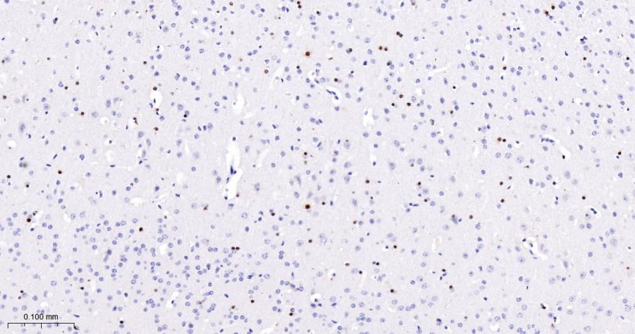 Paraformaldehyde-fixed, paraffin embedded Rat Cerebrum; Antigen retrieval by boiling in sodium citrate buffer (pH6.0) for 15 min; The section was incubated with SOX10 Monoclonal Antibody, Unconjugated (bsm-60234R) at 1:300 overnight at 4°C, followed by conjugation to the bs-0295G-HRP and DAB (C-0010) staining.