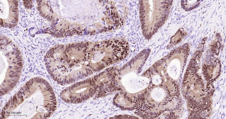 Paraformaldehyde-fixed, paraffin embedded Human Colon Cancer; Antigen retrieval by boiling in sodium citrate buffer (pH6.0) for 15 min; Antibody incubation with S100P Monoclonal Antibody, Unconjugated(bsm-60370R) at 1:200 overnight at 4°C, followed by conjugation to the bs-0295G-HRP and DAB (C-0010) staining.