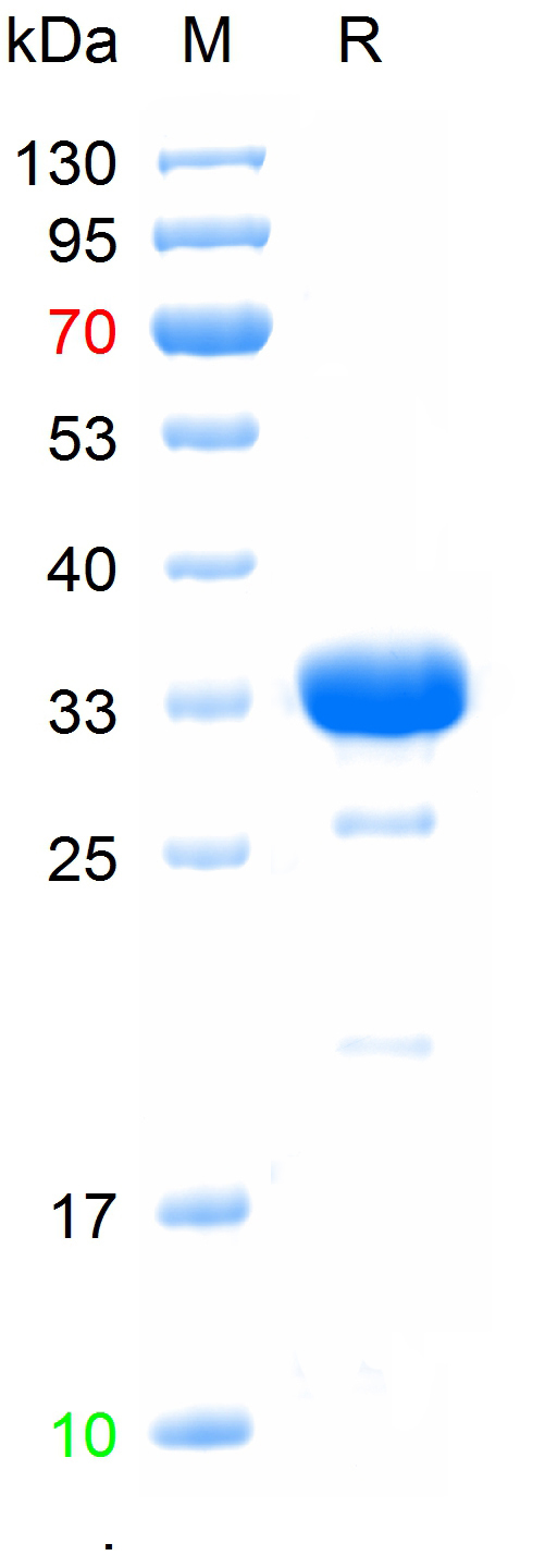 The purity of the protein is greater than 90% as determined by reducing SDS-PAGE.