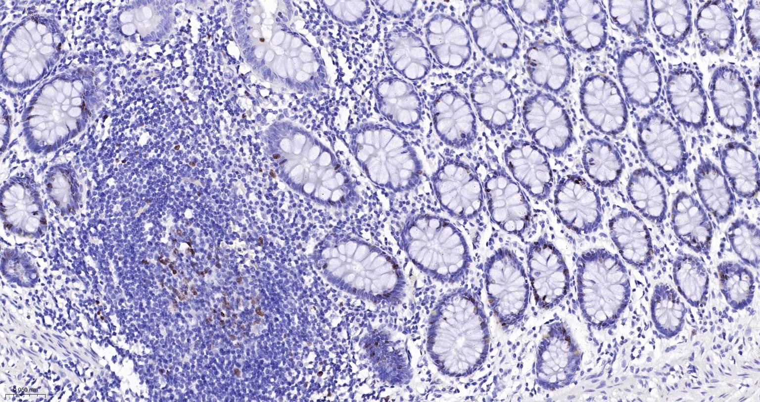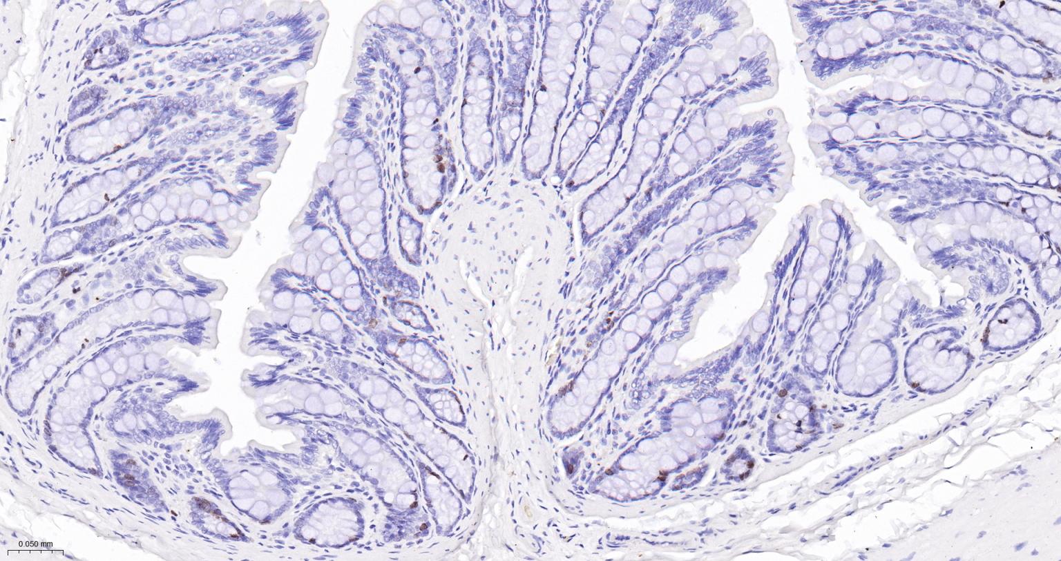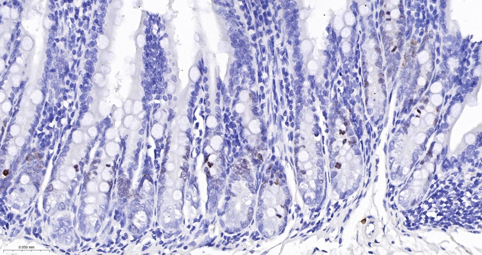 Paraformaldehyde-fixed, paraffin embedded Mouse Colon; Antigen retrieval by boiling in sodium citrate buffer (pH6.0) for 15 min; Antibody incubation with Ki67Monoclonal Antibody, Unconjugated(bsm-52455R) at 1:200 overnight at 4°C, followed by conjugation to the SP Kit (Rabbit, SP-0023) and DAB (C-0010) staining.
